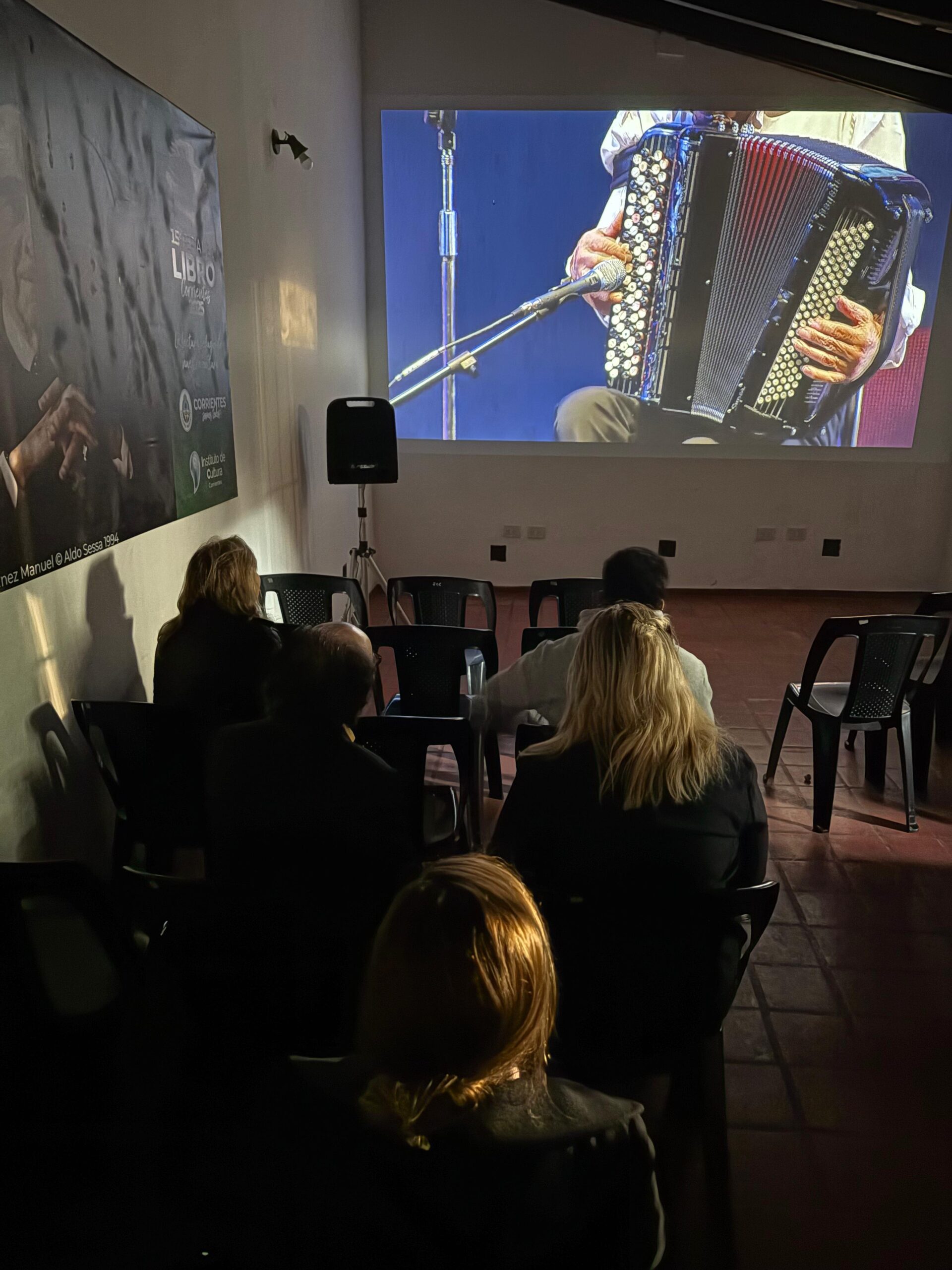 Luego de las palabras de los presentes, se procedió a la proyección de fragmentos de distintos materiales audiovisuales vinculados a la vida y obra del compositor e intérprete.