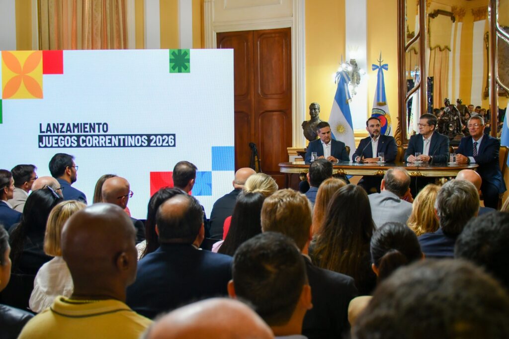 El gobernador Juan Pablo Valdés realizó este jueves la presentación de una nueva edición de los Juegos Correntinos 2026 en el Salón Amarillo de Casa de Gobierno. Durante la presentación, se destacó el alcance provincial de los Juegos que involucran a 77 comunas organizadas en 6 zonas deportivas, con un calendario que se extenderá de abril a octubre.