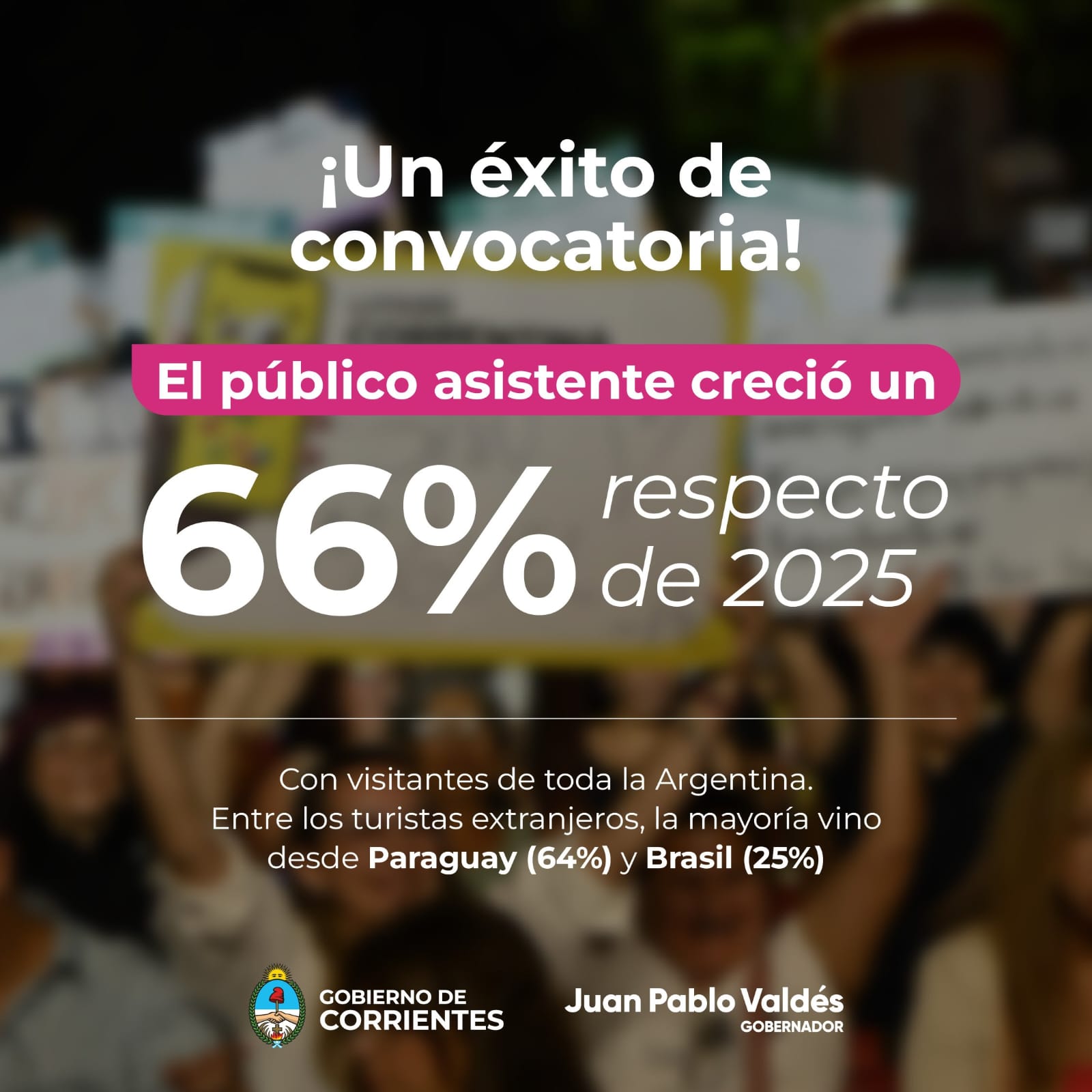 El 72% del público llegó al anfiteatro desde la Capital e interior de la provincia de Corrientes, el 22% de otras provincias argentinas, de las cuales el 43,9% corresponde a Chaco y el 12,9% a Buenos Aires, con una fuerte tracción del NEA y presencia también de la Patagonia, mientras que el 6% del público fue internacional, principalmente de Paraguay y Brasil.