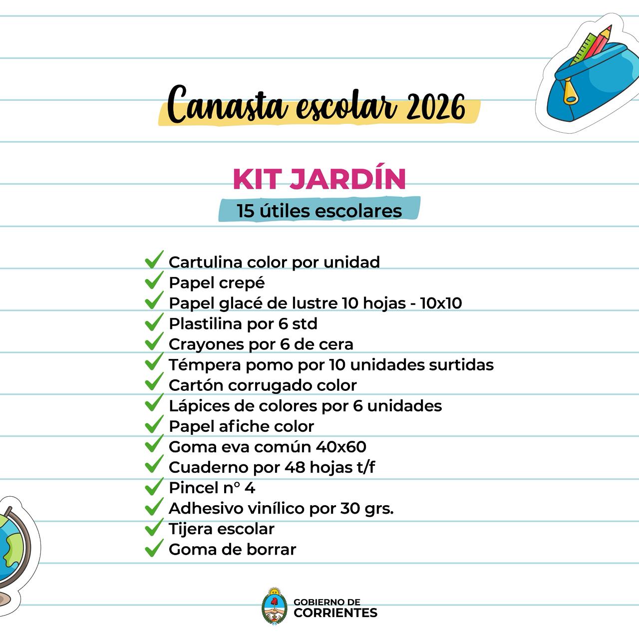 El gobierno ha hecho un gran esfuerzo para sostener los precios de la canasta escolar del año pasado, incluso se redujeron los del kit de jardín de infantes. El descuento ronda el casi un 30% menos en la compra respecto de los precios de lista de los útiles, que incluyen 15 artículos en el kit del nivel inicial, 13 útiles básicos para la primaria y 12 para la secundaria, con un monto de $12.999 hasta el 31 de marzo.