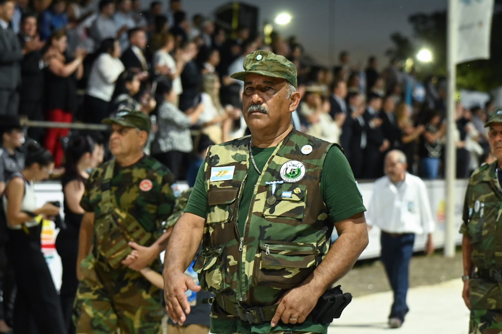 Durante la ceremonia, el representante del comandante de la Primera División del Ejército, el coronel Osvaldo Díaz Colodrero, invitó a las autoridades a saludar a la Agrupación Malvinas.