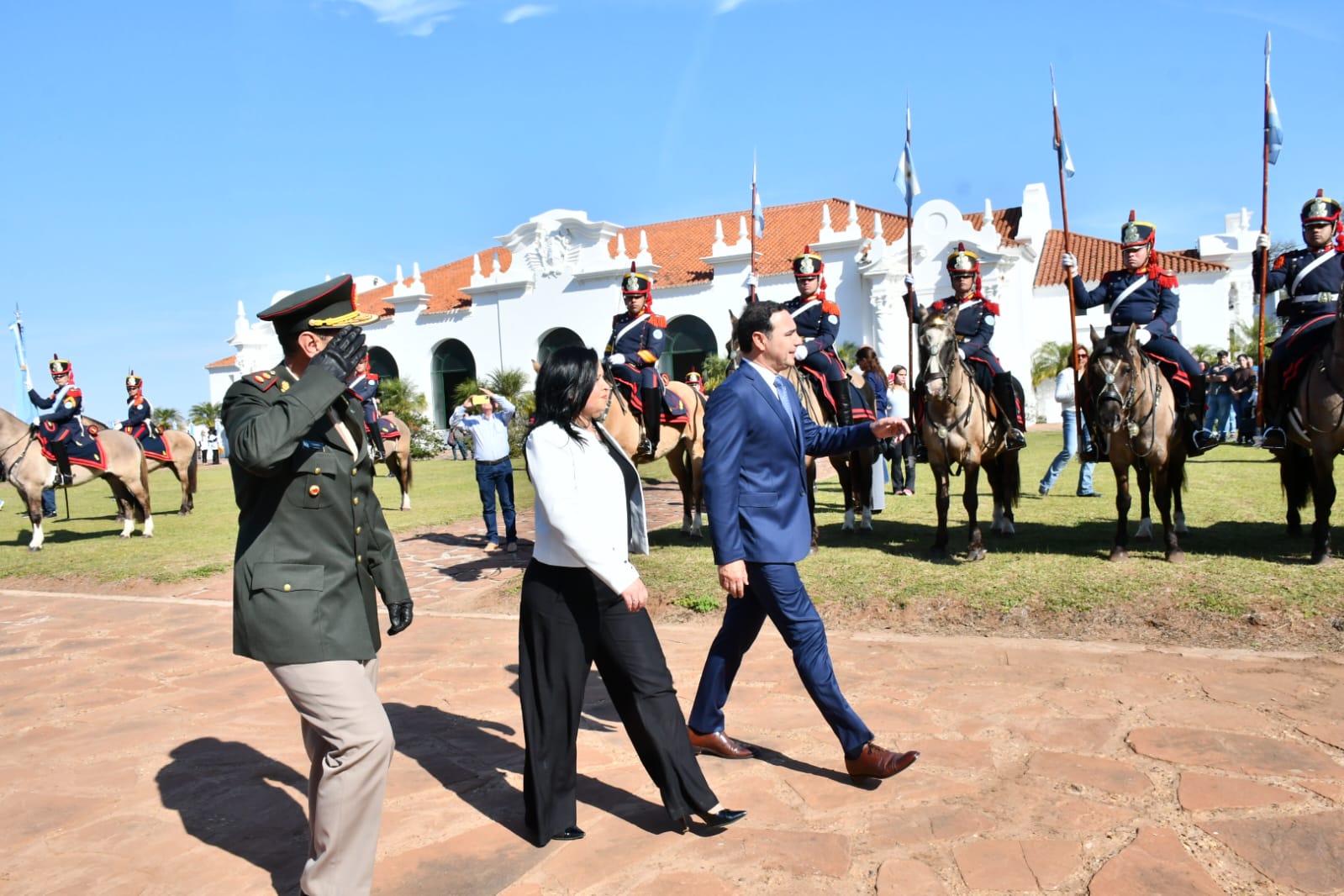 Para dar inicio al acto, el jefe de la Agrupación Libertador, teniente coronel José María Carranza presentó a los efectivos formados al gobernador de la provincia Gustavo Valdés, quien pasó revista y saludó a la formación acompañado por el comandante de la I División de Ejército, general de brigada Héctor Tornero y la intendenta de Yapeyú, Marisol Fagundez.