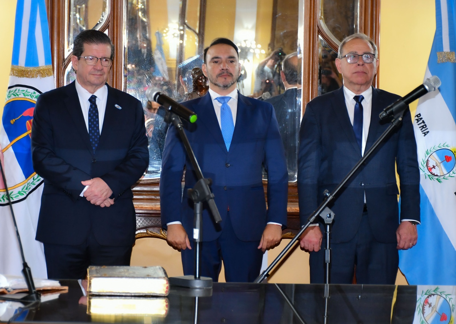 En el marco del acto y como lo indica el protocolo, el escribano mayor de Gobierno, Rolando Battilana, dio lectura al acta correspondiente a los efectos de intervenir conforme al decreto respectivo en el acto de juramento de ley y asunción del cargo. Posteriormente, el gobernador y los nuevos ministros refrendaron dicho oficio.