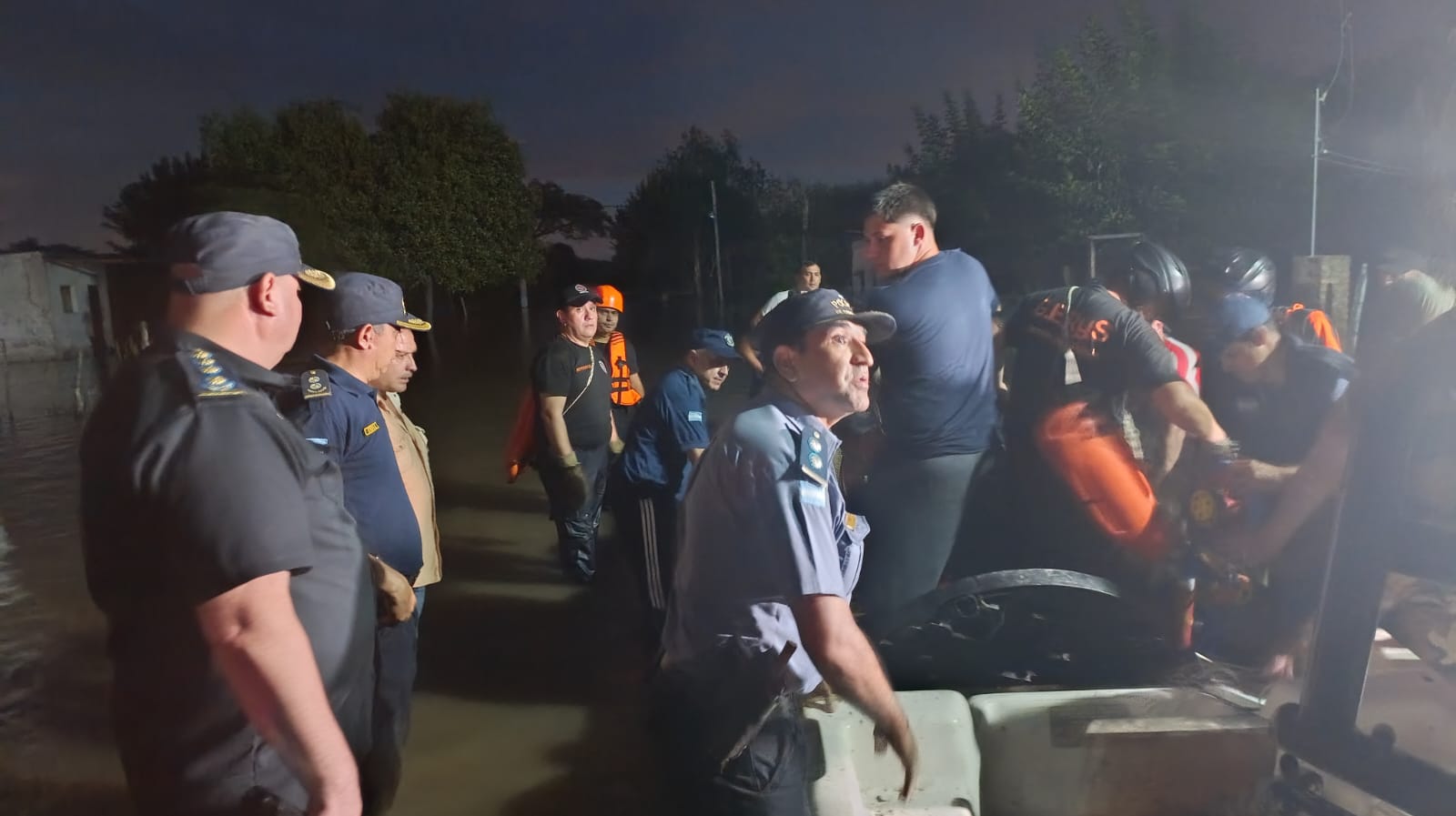 La Policía de Corrientes a través de la Unidad Regional 1, Comisaría local y GTO, y el grupo G.E.R.Y.S. (Grupo Especial de Rescate y Salvamento) de la Dirección General de Lucha Contra el Fuego – Bomberos de la Policía de Corrientes, sumaron móviles y personal policial para colaborar y ayudar en evacuación y rescate a personas afectadas por el agua ante las malas condiciones climáticas, como así también para brindar una mayor seguridad en la zona.