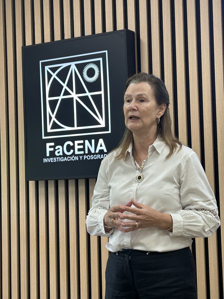 Al momento de hacer uso de la palabra, la decana de FaCENA destacó que “cuando asumimos en 2018, teníamos con el equipo de gestión muy en claro la potencialidad que tiene la facultad en cuanto a la tarea propia de investigación, y aqui la secretaria mostró que en 2025 llegamos a casi un cuarto de la cantidad de proyectos de investigación de toda la universidad, eso demuestra nuestro potencial”.