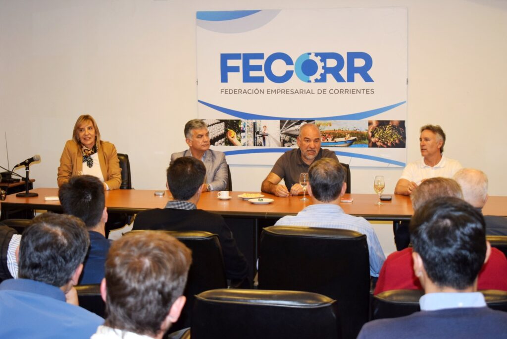 El candidato a intendente por la alianza Vamos Corrientes, Claudio Polich, acompañado de su compañero de fórmula, Ariel Báez, mantuvo una reunión con autoridades y representantes de la Federación Empresarial de Corrientes (FECORR) para dialogar sobre los desafíos del sector, las oportunidades de crecimiento de la ciudad y la importancia de fortalecer la articulación entre el sector público y privado.
